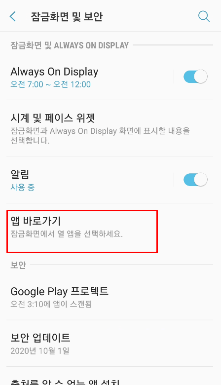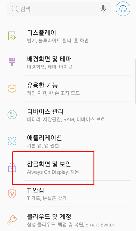2. 잠금화면 기능을 선택합니다.
